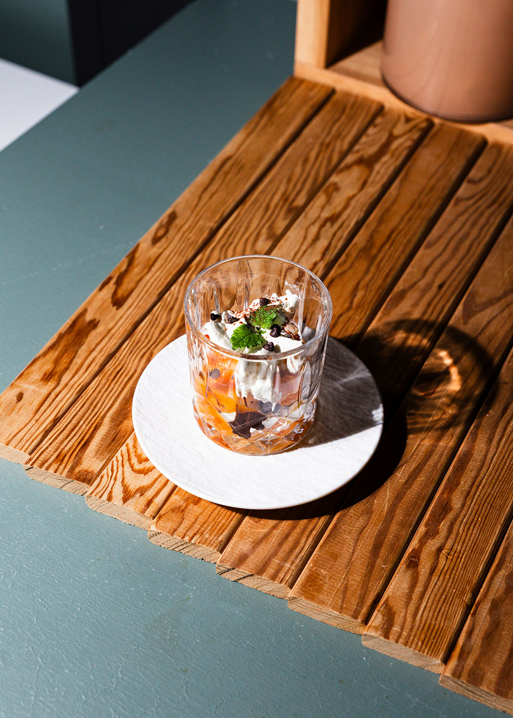 - Kaakaojauhetta ja hilloja (ja/tai suklaalastuja, sitruunamelissan tai mintunlehtiä) koristeluun.